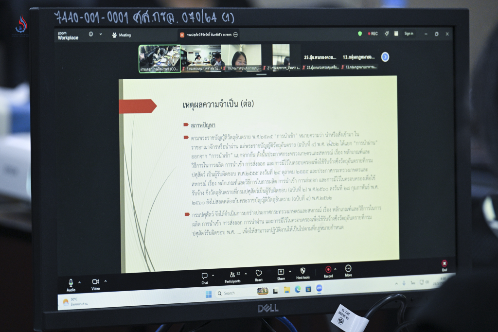การประชุมในครั้งนี้ ได้พิจารณาและเห็นชอบร่างกฎหมายลำดับรองฯ ในประเด็นที่เกี่ยวข้องกับวัตถุอันตรายในความรับผิดชอบของกรมปศุสัตว์ ได้แก่ ร่างหลักเกณฑ์และวิธีการในการผลิต การนำเข้า การส่งออก การนำผ่าน และการมีไว้ในครอบครองเพื่อใช้รับจ้างซึ่งวัตถุอันตรายที่กรมปศุสัตว์รับผิดชอบ และปรับปรุงรายชื่อวัตถุอันตรายโดยปรับปรุงเงื่อนไขและรายชื่อสารควบคุมเพื่อให้เกิดความชัดเจน ครอบคลุมวัตถุอันตรายที่กรมปศุสัตว์รับผิดชอบ และไม่ซ้ำซ้อนกับหน่วยงานอื่น ซึ่งจะช่วยให้การกำกับดูแลการใช้วัตถุอันตรายให้มีประสิทธิภาพ เป็นไปตามมาตรฐานและมีความปลอดภัยต่อประชาชนและสิ่งแวดล้อมมากยิ่งขึ้น