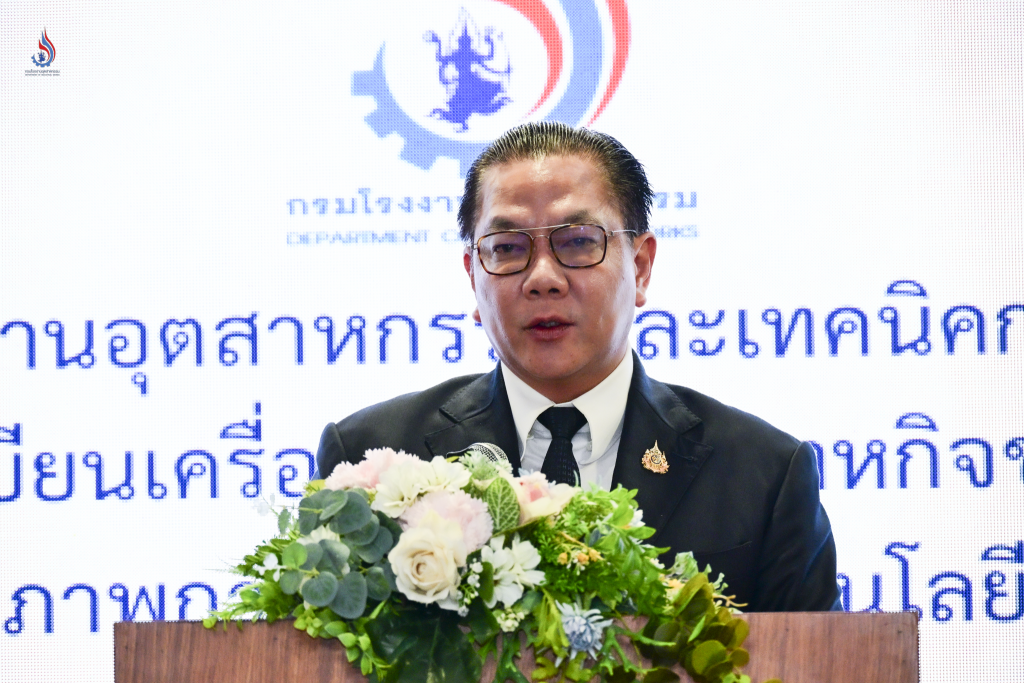 อธิบดีกรมโรงงานอุตสาหกรรม กล่าวว่า ในสภาวะเศรษฐกิจปัจจุบันที่ต้นทุนพลังงานมีความผันผวนและการแข่งขันในตลาดโลกสูงขึ้น กรมโรงงานอุตสาหกรรม (กรอ.) โดยสำนักงานทะเบียนเครื่องจักรกลาง ตระหนักดีว่าโรงงานอุตสาหกรรมจะหยุดนิ่งอยู่กับวิธีการเดิม ๆ ไม่ได้ ภารกิจของ กรอ. ตามพระราชบัญญัติจดทะเบียนเครื่องจักร ไม่ใช่เพียงการรับจดทะเบียนเพื่อเป็นหลักทรัพย์ค้ำประกันเท่านั้น แต่เป้าหมายที่เหนือกว่านั้น คือการทำให้เครื่องจักรทุกเครื่องในโรงงานอุตสาหกรรมมีประสิทธิภาพ สามารถสร้างมูลค่าเพิ่มให้กับธุรกิจได้ด้วยเทคโนโลยีสมัยใหม่ การสัมมนาในครั้งนี้จึงเปรียบเสมือนสะพานที่เชื่อมโยงระหว่าง “แหล่งเงินทุน” และ “นวัตกรรม” เข้าด้วยกัน การนำระบบควบคุมอัจฉริยะและปัญญาประดิษฐ์ หรือ AI มาประยุกต์ใช้ไม่ใช่เรื่องไกลตัวอีกต่อไป แต่คือเครื่องมือสำคัญที่จะช่วยให้ “รู้ทัน” การใช้พลังงาน ลดความสูญเสียที่ไม่จำเป็น และเพิ่มผลกำไรให้กับสถานประกอบการได้อย่างยั่งยืน