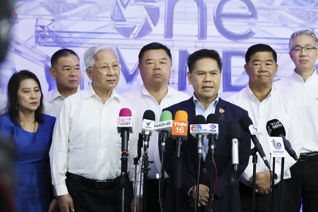 นายวราวุธ ศิลปอาชา รัฐมนตรีว่าการกระทรวงอุตสาหกรรม พร้อมทีมที่ปรึกษา ร่วมให้สัมภาษณ์สื่อ