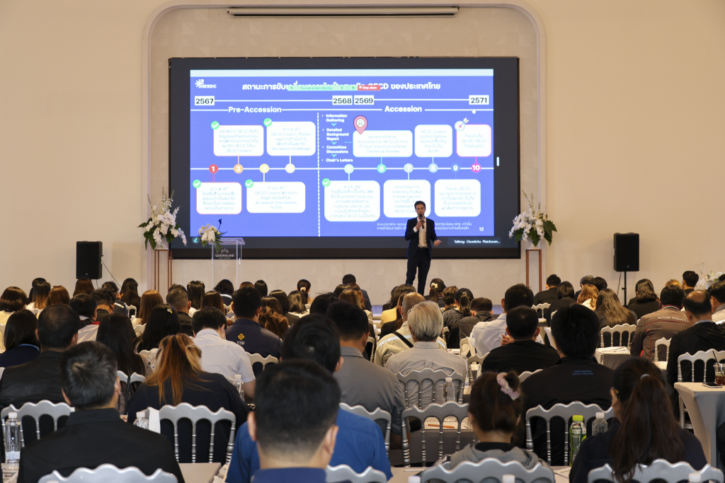 การปาฐกถาพิเศษจาก ดร. ธัชไท กีรติพงค์ไพบูลย์ ผู้อำนวยการกองยุทธศาสตร์และประสานความร่วมมือระหว่างประเทศ สำนักงานสภาพัฒนาการเศรษฐกิจและสังคมแห่งชาติ เกี่ยวกับการดําเนินงานของประเทศไทยในการเข้าเป็นสมาชิก OECD และประโยชน์ที่จะได้รับการจากเข้าร่วมเป็นสมาชิก OECD