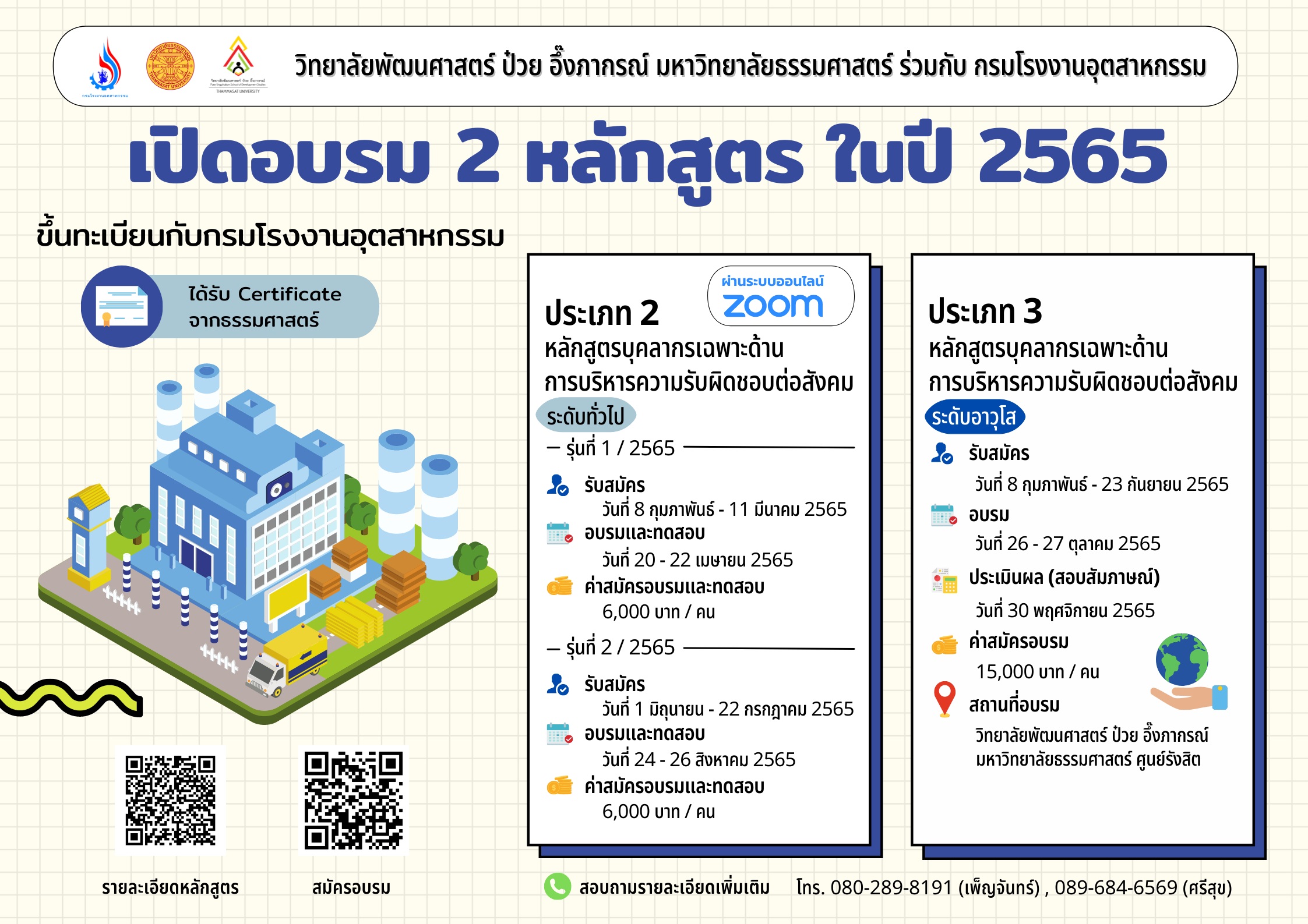 Facebook iconFacebookTwitter iconTwitterLINE iconLine Read more articles Previous Postการรับสมัครเข้ารับการอบรมและทดสอบหลักสูตรบุคลากรเฉพาะด้านความรับผิดชอบต่อสังคมประจำโรงงาน ของสถาบันรับรองมาตรฐาานไอเอสโอ ประจำปี 2565 Next Postเชิญเข้าร่วม โครงการฝึกอบรม เรื่อง ความรู้ความเข้าใจเกี่ยวกับพระราชบัญญัติโรงงาน พ.ศ. 2535 และที่แก้ไขเพิ่มเติมและอนุบัญญัติต่างๆ (สำหรับผู้ประกอบกิจการผดรงงาน) ประจำปีงบประมาณ พ.ศ. 2565